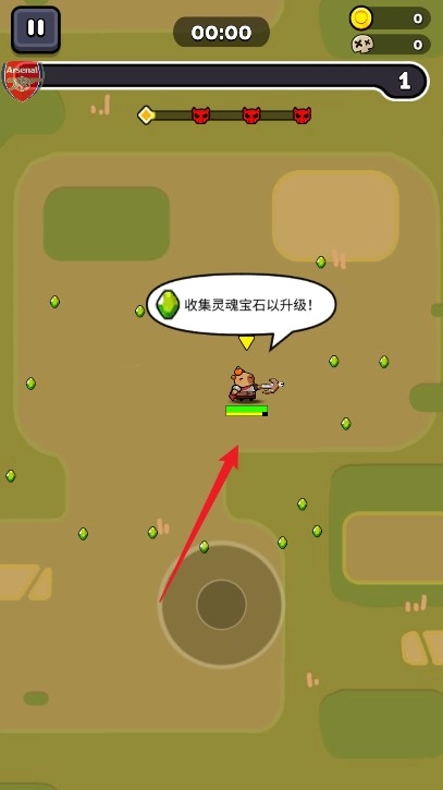 2、移动卡皮巴拉在场景地图中游走,收集散落的灵魂宝石、升级角色