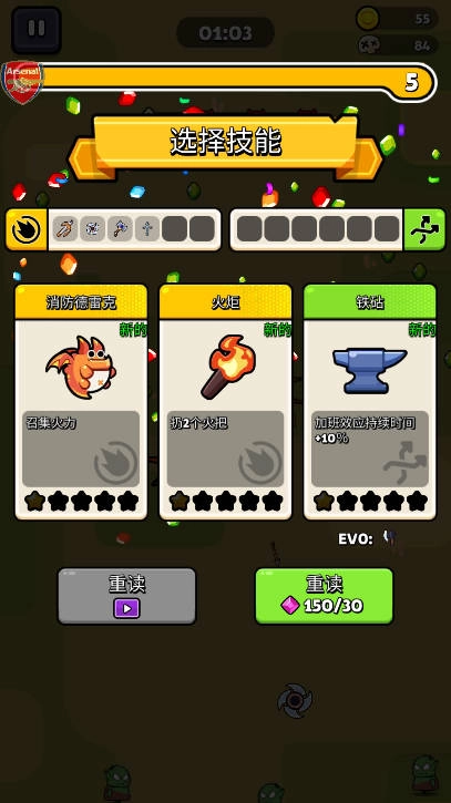 2、当战士升级到指定等级后,就可解锁各式各样的技能或武器,重复选择还可提高技能星级。
