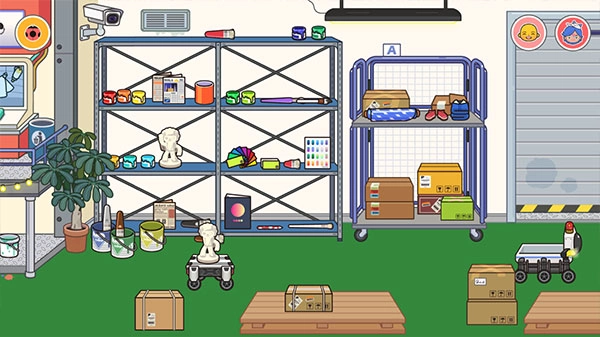 进入房间后,点击右上角的角色按钮,将携带纸箱的角色放入房间