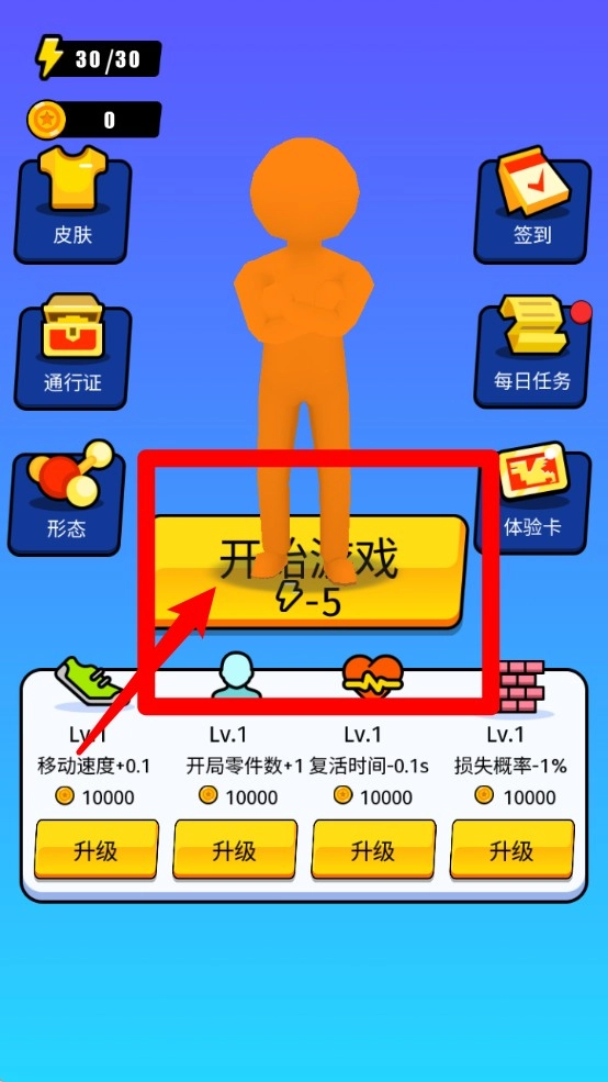 1.點擊開始遊戲:進入主畫面後,點擊「開始」按鈕展開第一場挑戰。