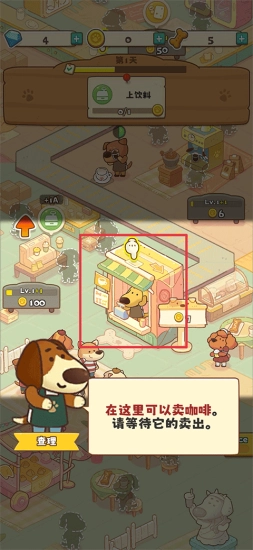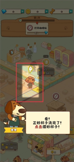 3、洗好的杯子会传送至咖啡馆,待负责做咖啡的小狗完成制作后点击即可送出