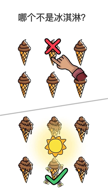 答案:滑动每一块西瓜,会找到一块咬了一口的西瓜,点它