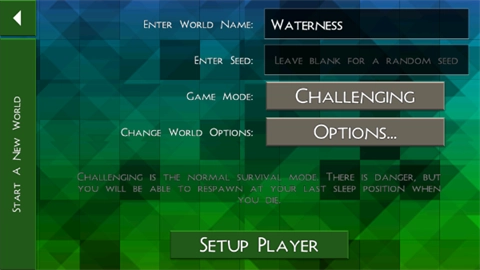 2、点击“new world”后,我们需要对创建世界,进行自定义的设置,设置完成后点击“setup player”。