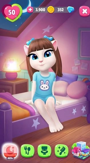 完成新手指引后,会开启每日任务,安吉拉吃东西、睡觉、上厕所、洗澡、刷牙、跳舞、睡觉完成后都能够增加它的经验。