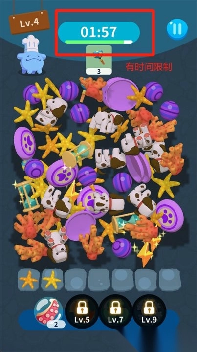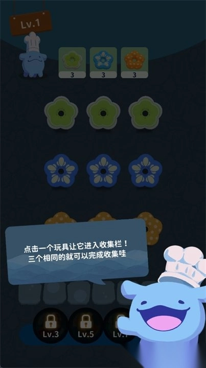 1. 轻点一个玩具,使其进入收集栏,当收集栏中有三个相同的玩具时,即完成收集。